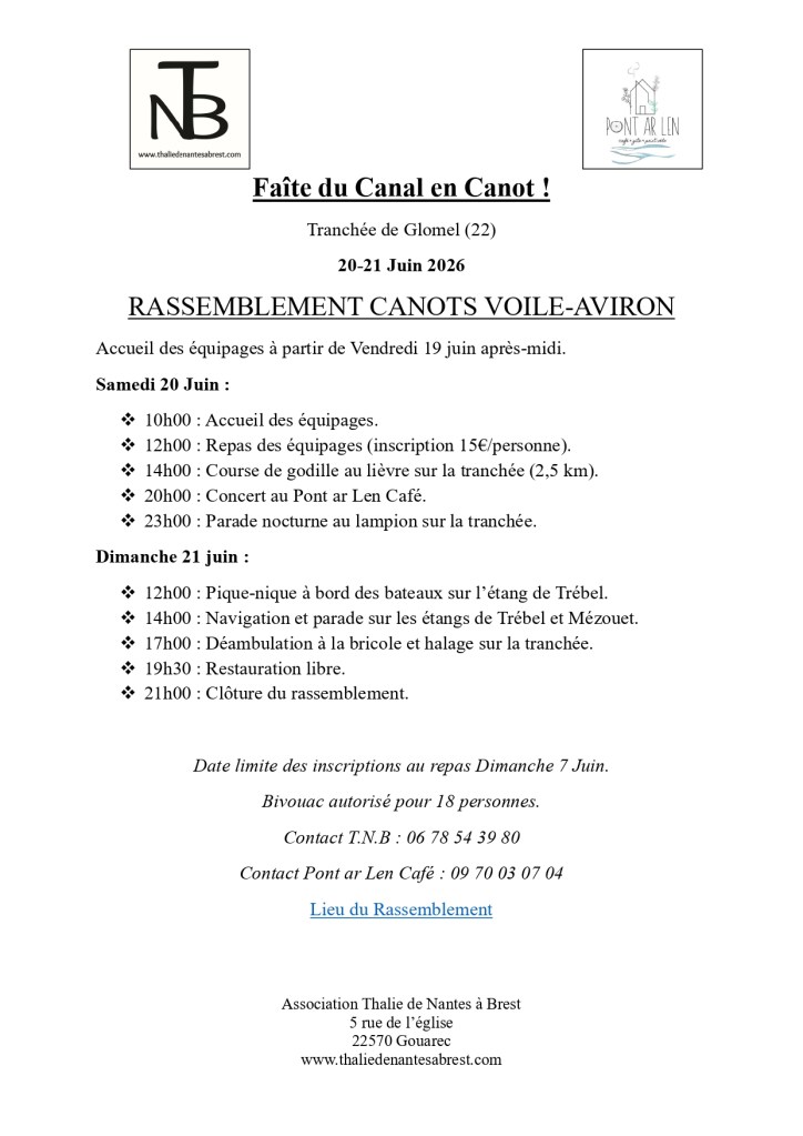 Nous vous invitons à nous rejoindre le dimanche 3 août au port de Gwareg (au foirail) pour passez une belle journée de navigation sur le canal.